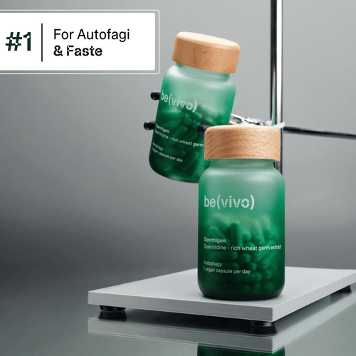 Spermidine activates autophagy – the body’s natural renewal process, usually triggered by fasting. It clears out damaged cells and supports cellular regeneration, promoting vitality and longevity from within. Even with a balanced diet, it helps maintain healthy energy metabolism for steady energy, focus, and well-being as you age.